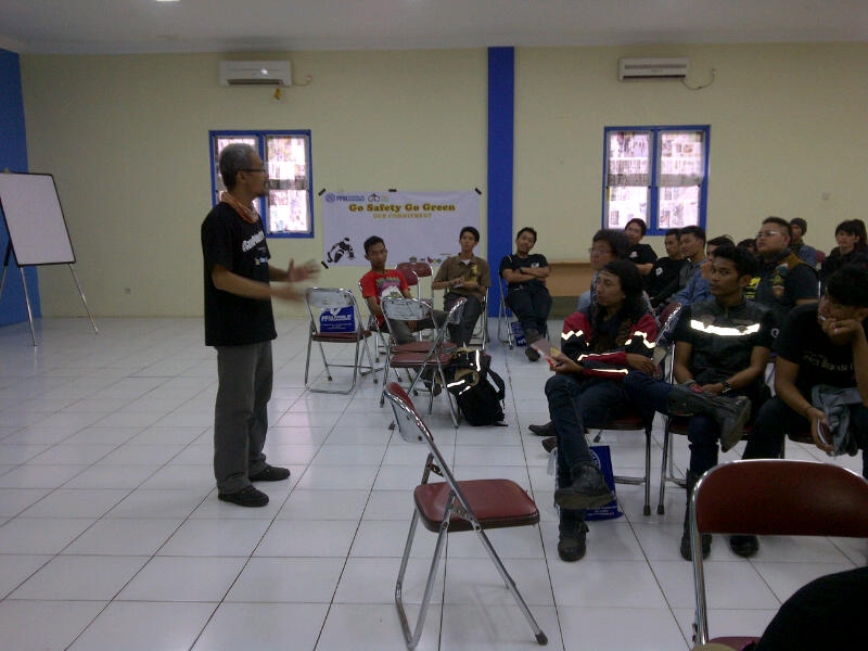 Tiga puluhan peserta dari beragam komunitas/klub motor di Jakarta, Bekasi, Medan berbaur dalam sebuah semangat, menambah pemahaman road safety. Kami dari Road Safety Association (RSA) menitikberatkan pada perilaku dan ketaatan pada aturan agar selamat saat berkendara di jalan. Materi yang dikemas dalam paparan, games kelompok, bernyanyi, dan audio visual memberi suuasana baru. Cukup lumayan efektif.